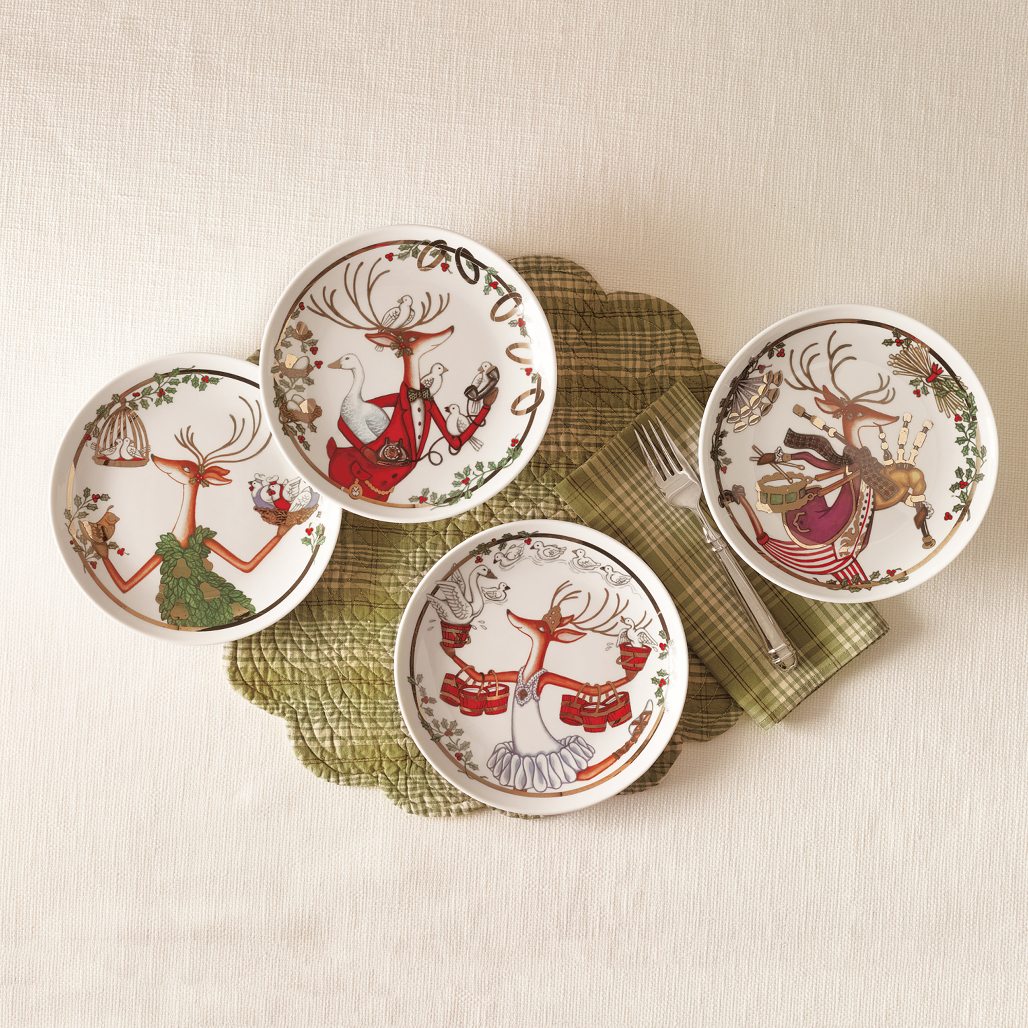 Painted figures with scripted captions resemble fairytale illustrations, lending a bit of whimsy and a pop of color to holiday entertaining.